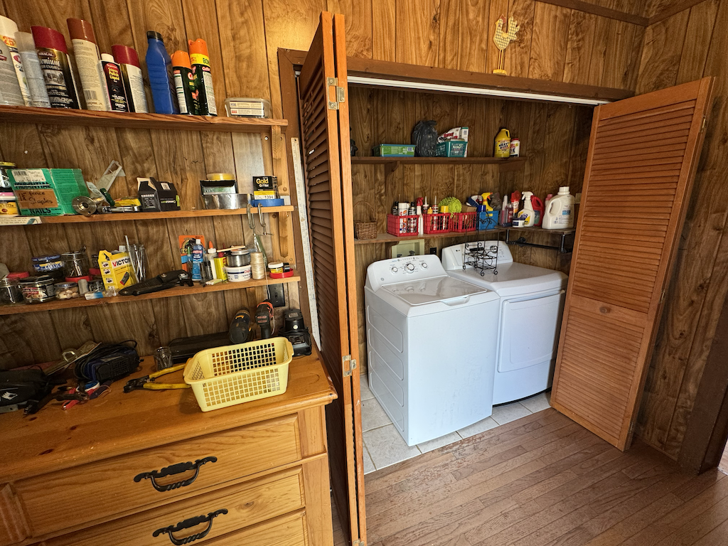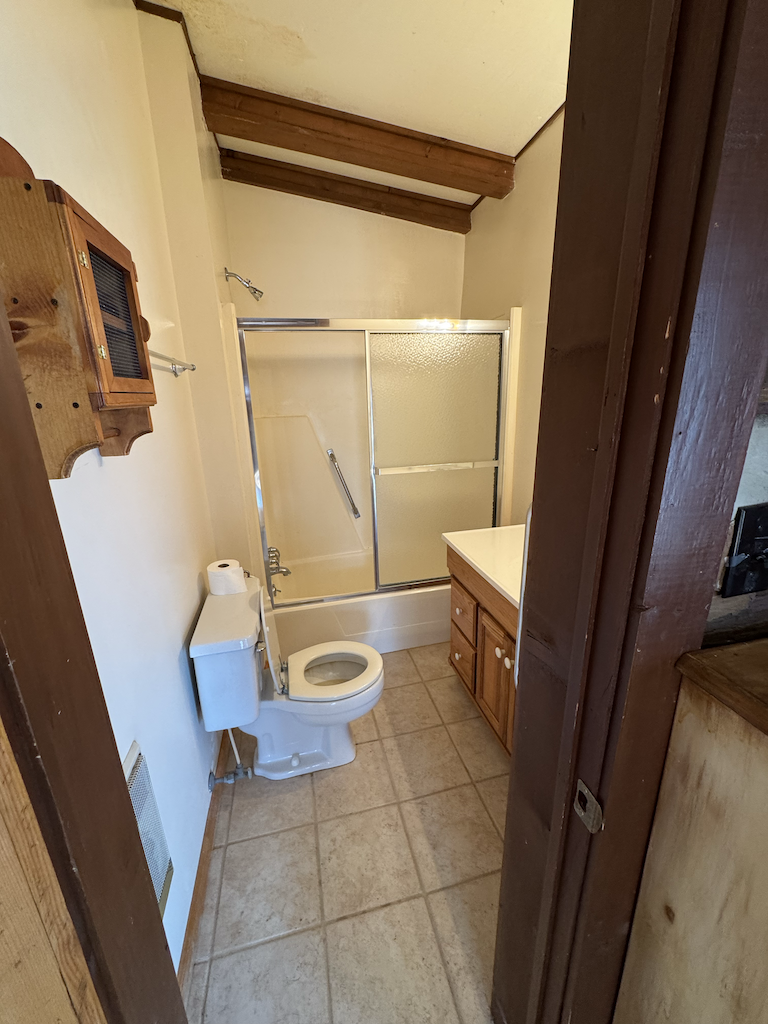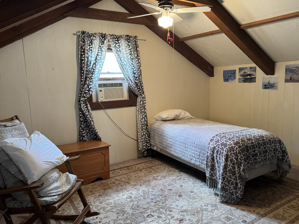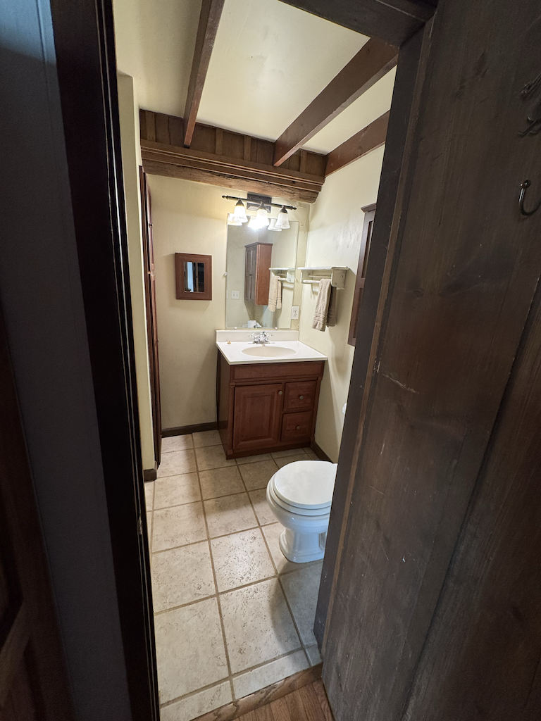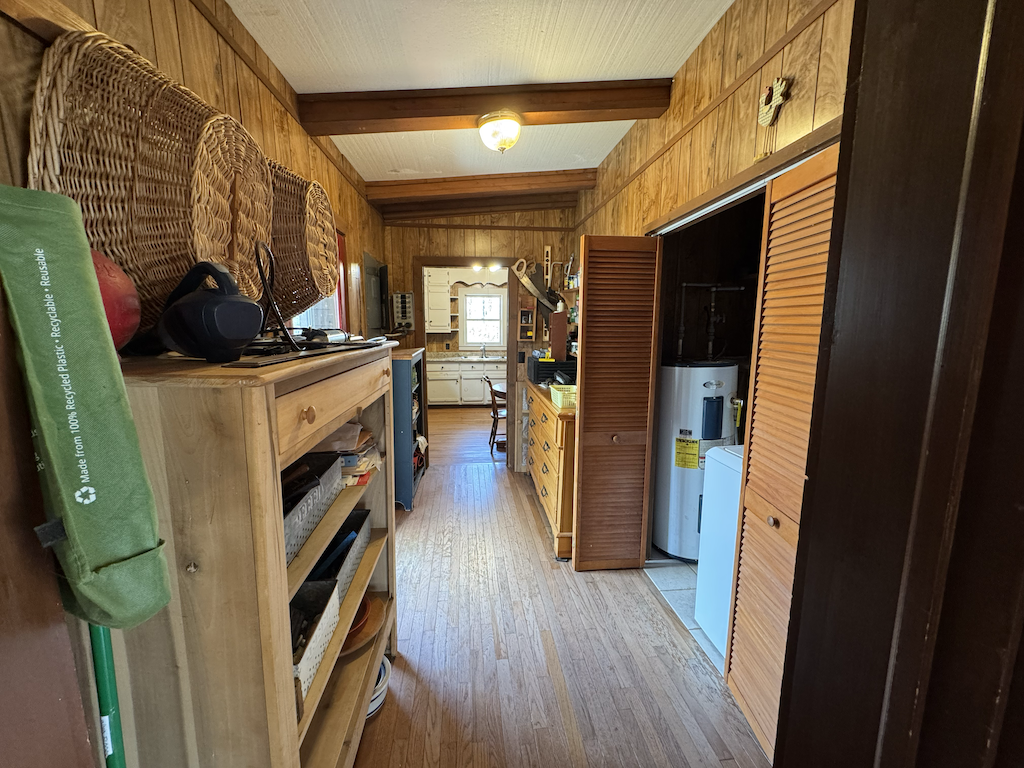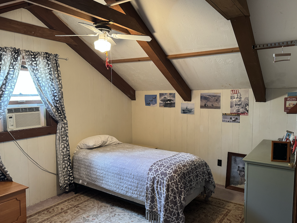 The log home has +/- 1,644 sq ft with two separate living areas. Both sides of the home have their own staircase leading to an upstairs bedroom, along with a bathroom located adjacent to each living space both with their own wood stove. There is plenty of flexibility to create a setup that works well for guests, multi-family use, or added privacy. The home is served by a private well and septic system and is equipped with mini-split heating and air for year-round comfort.